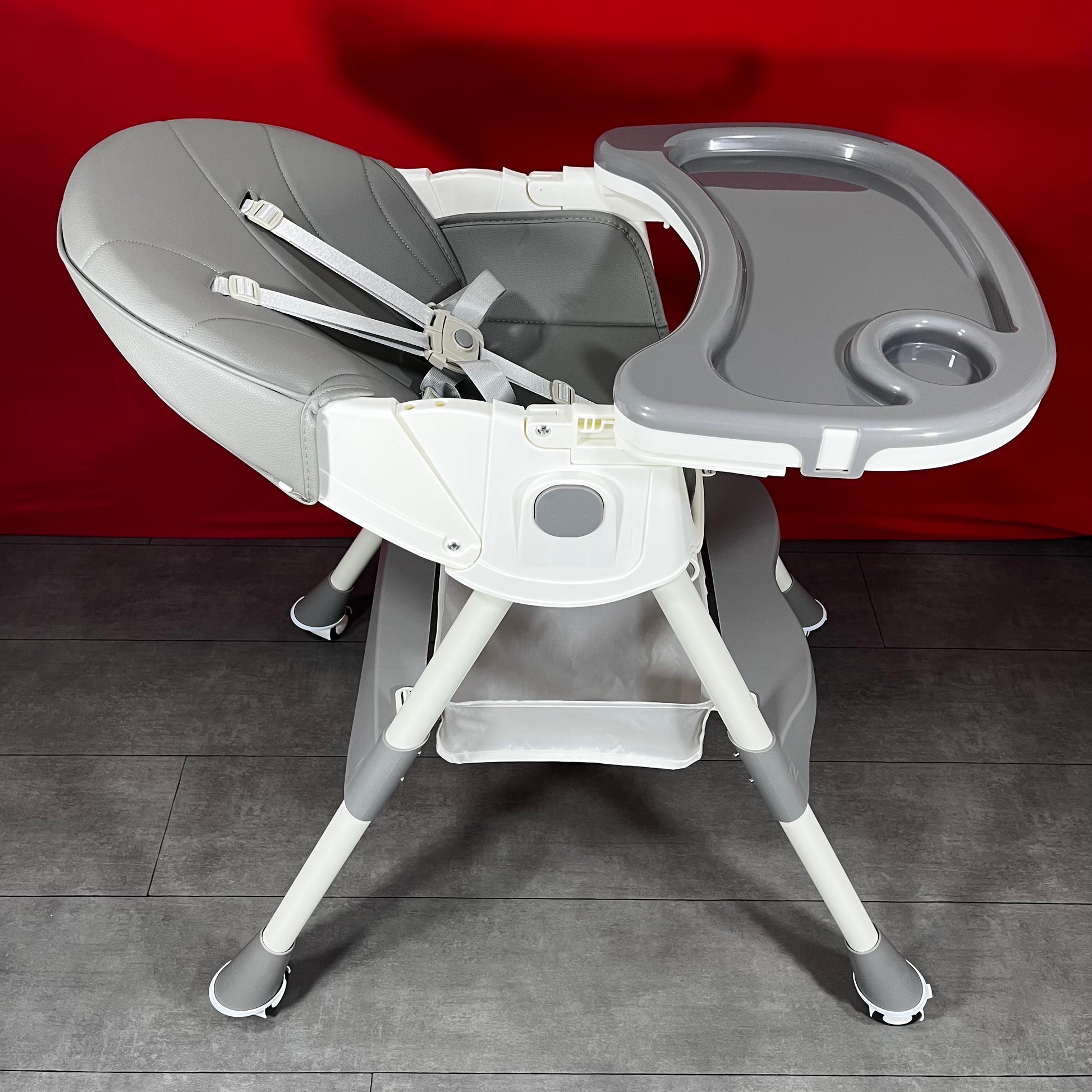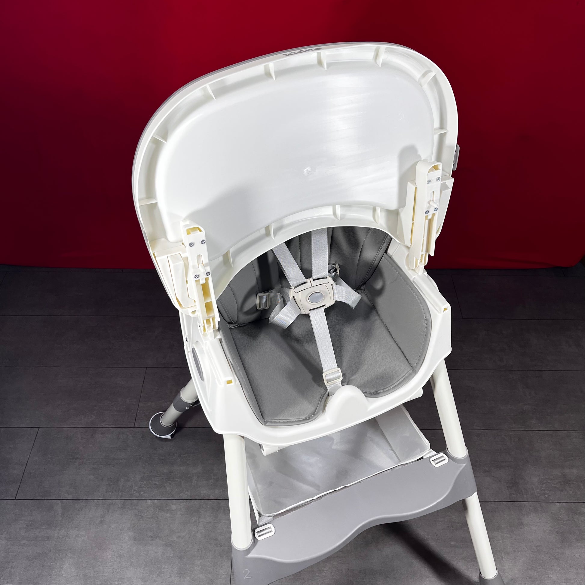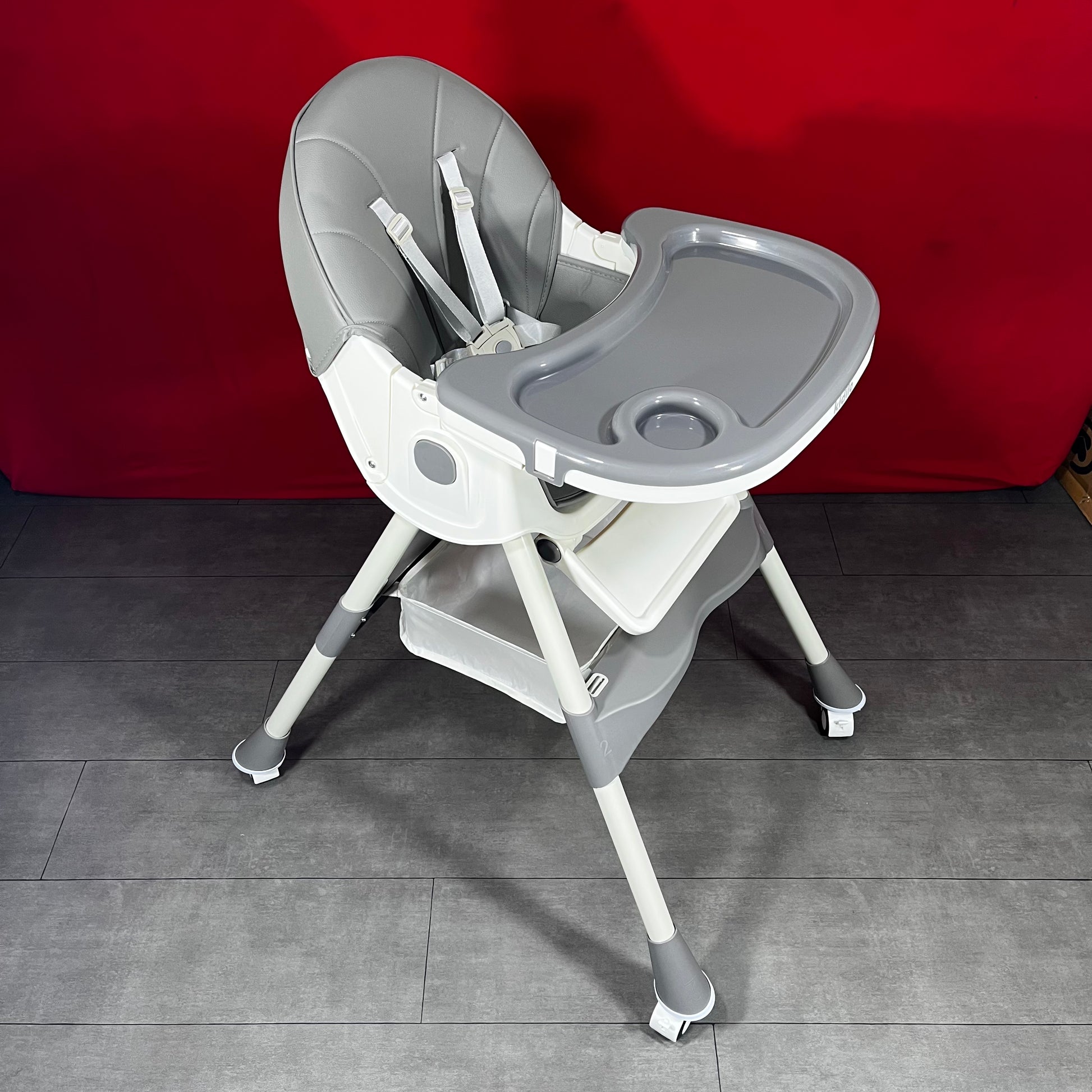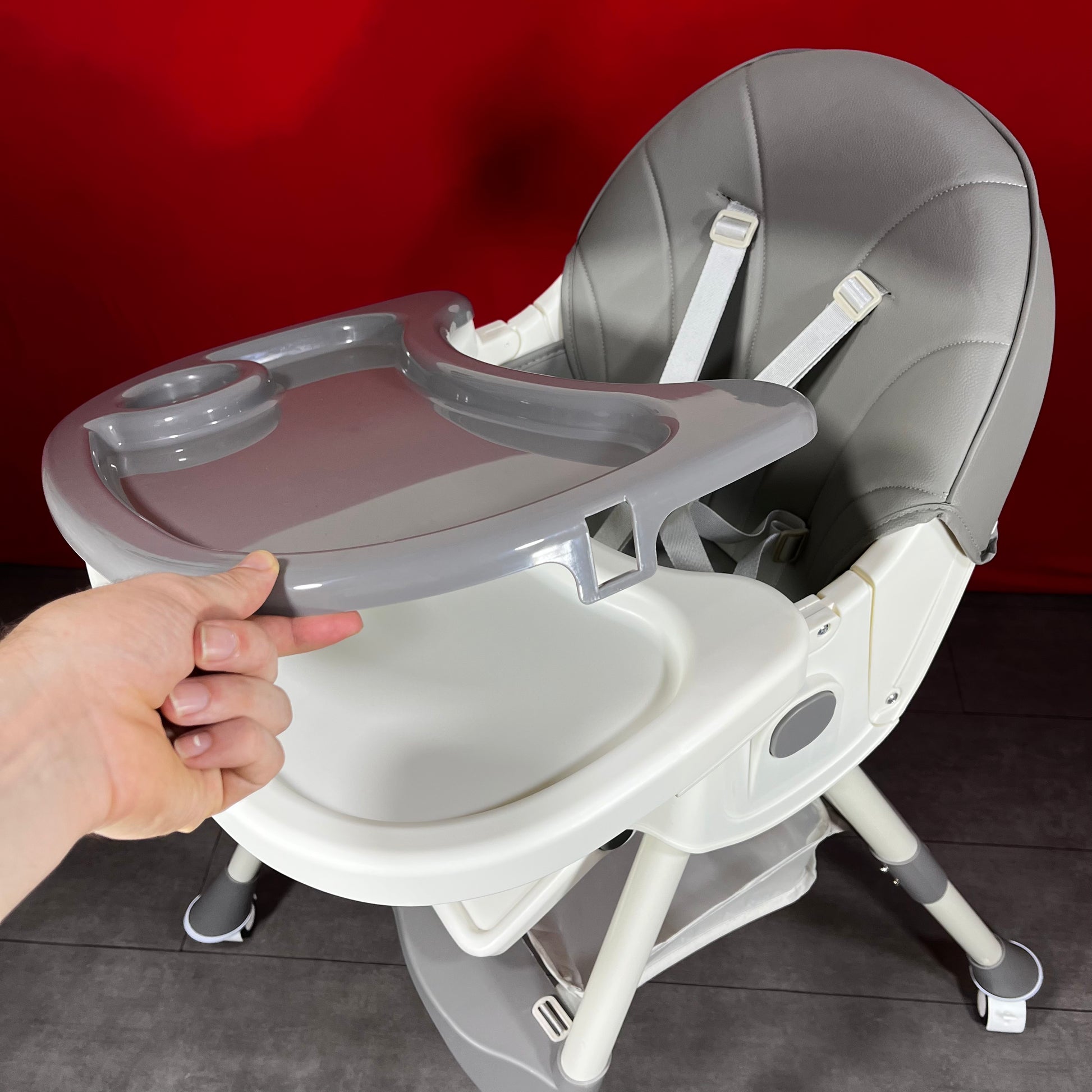 يحتوي الكرسي أيضًا على عجلات لسهولة التحرك داخل المنزل ، مع حزام أمان لضمان حماية الطفل. يتميز بتعدد الوضعيات لراحة أكبر، وسطح سهل التنظيف بعد كل وجبة. كما يوجد مساحة عملية أسفل الكرسي لتخزين مستلزمات الطفل ، ويمكن طيه بكل سهولة لتوفير المساحة