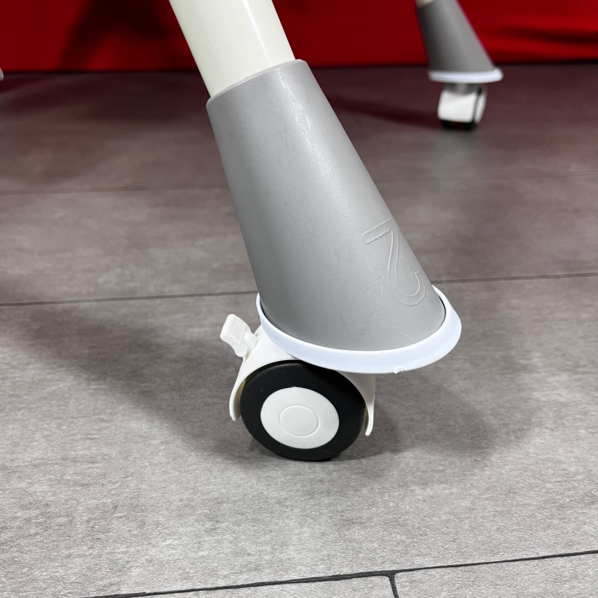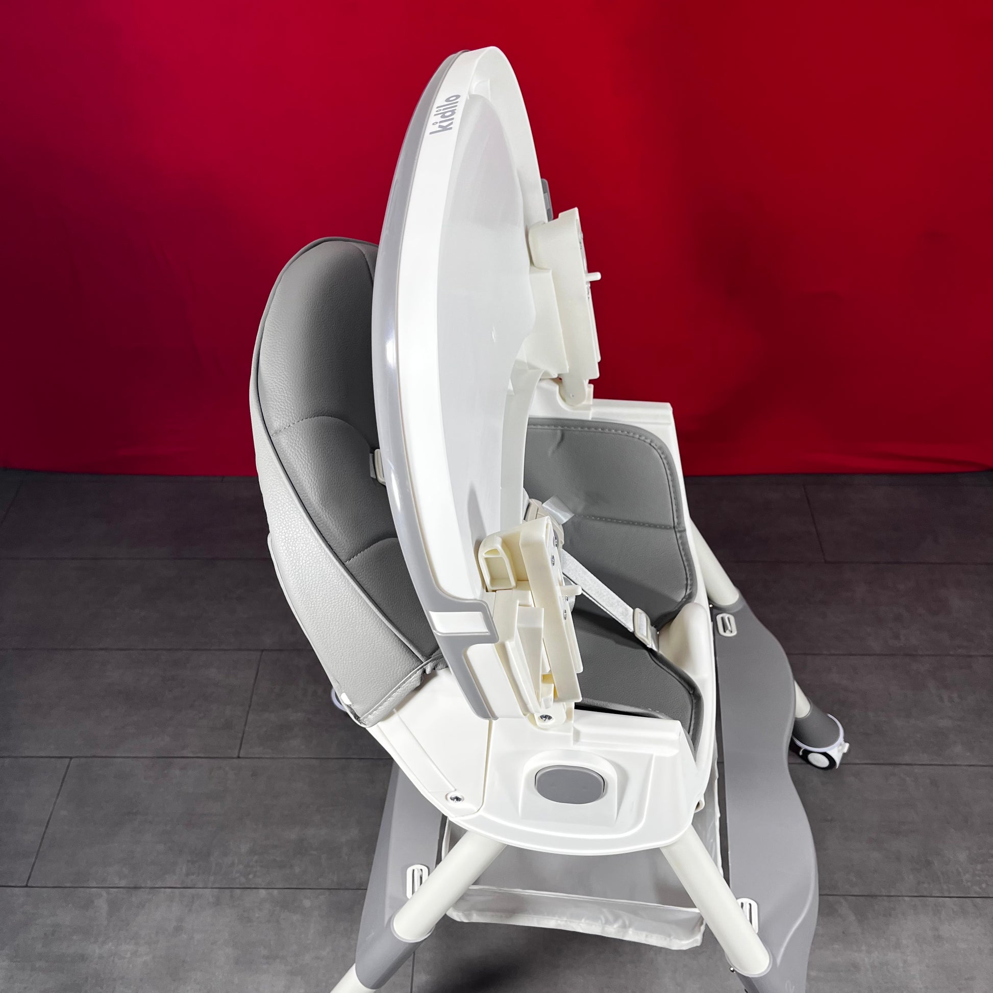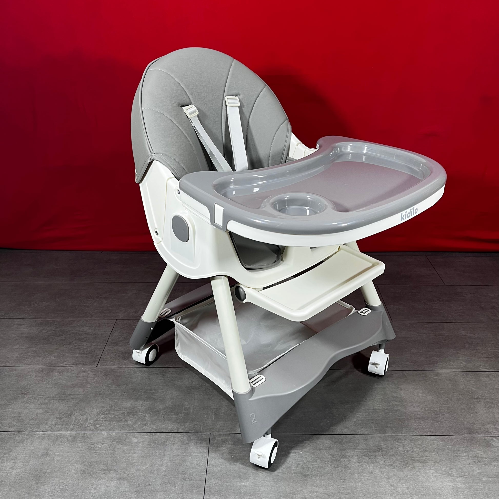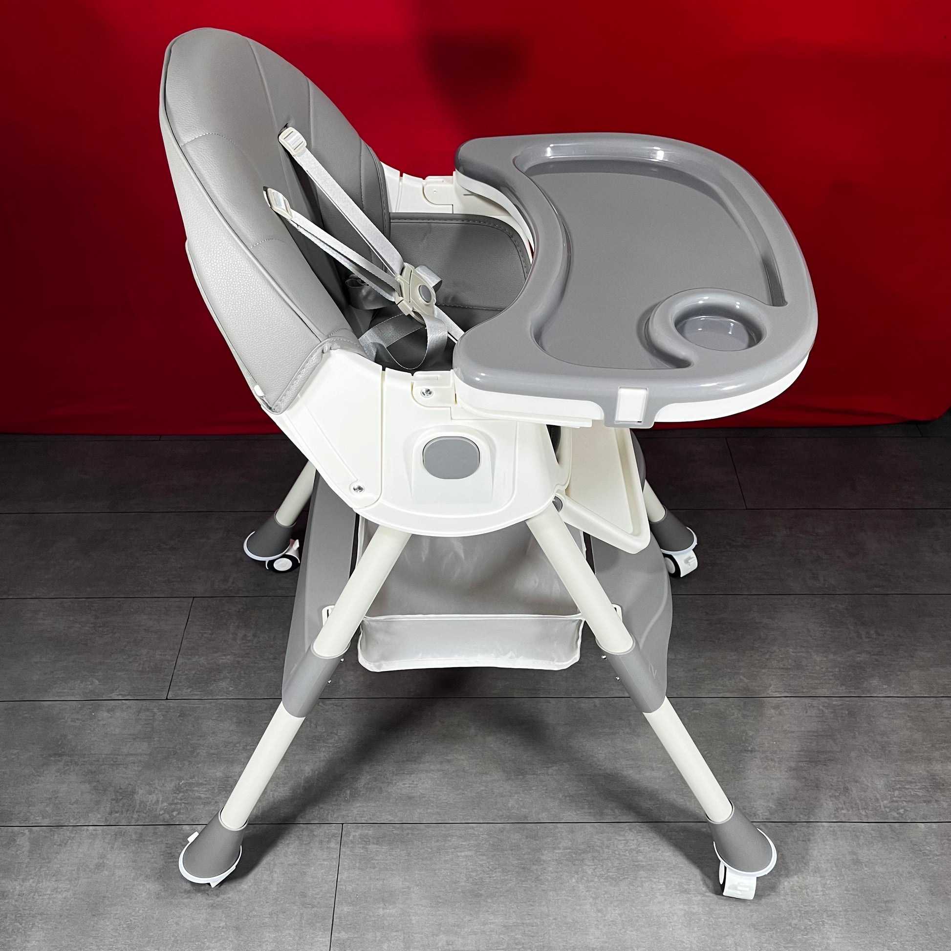 يحتوي الكرسي أيضًا على عجلات لسهولة التحرك داخل المنزل ، مع حزام أمان لضمان حماية الطفل. يتميز بتعدد الوضعيات لراحة أكبر، وسطح سهل التنظيف بعد كل وجبة. كما يوجد مساحة عملية أسفل الكرسي لتخزين مستلزمات الطفل ، ويمكن طيه بكل سهولة لتوفير المساحة