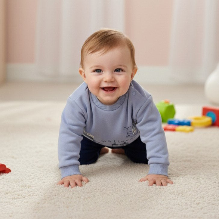 طقم أطفال قطني ناعم وعالي الجودة مع رسمة روبوتات ، يمنح طفلك راحة ودفء وأناقة يومية