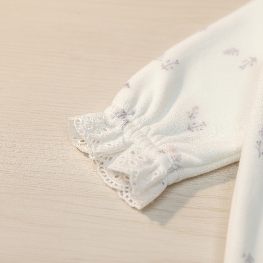 Grenouillère bébé en velours doux, décorés de petites fleurs, Confortable et chaude, idéale pour un sommeil paisible. صور حقيقية