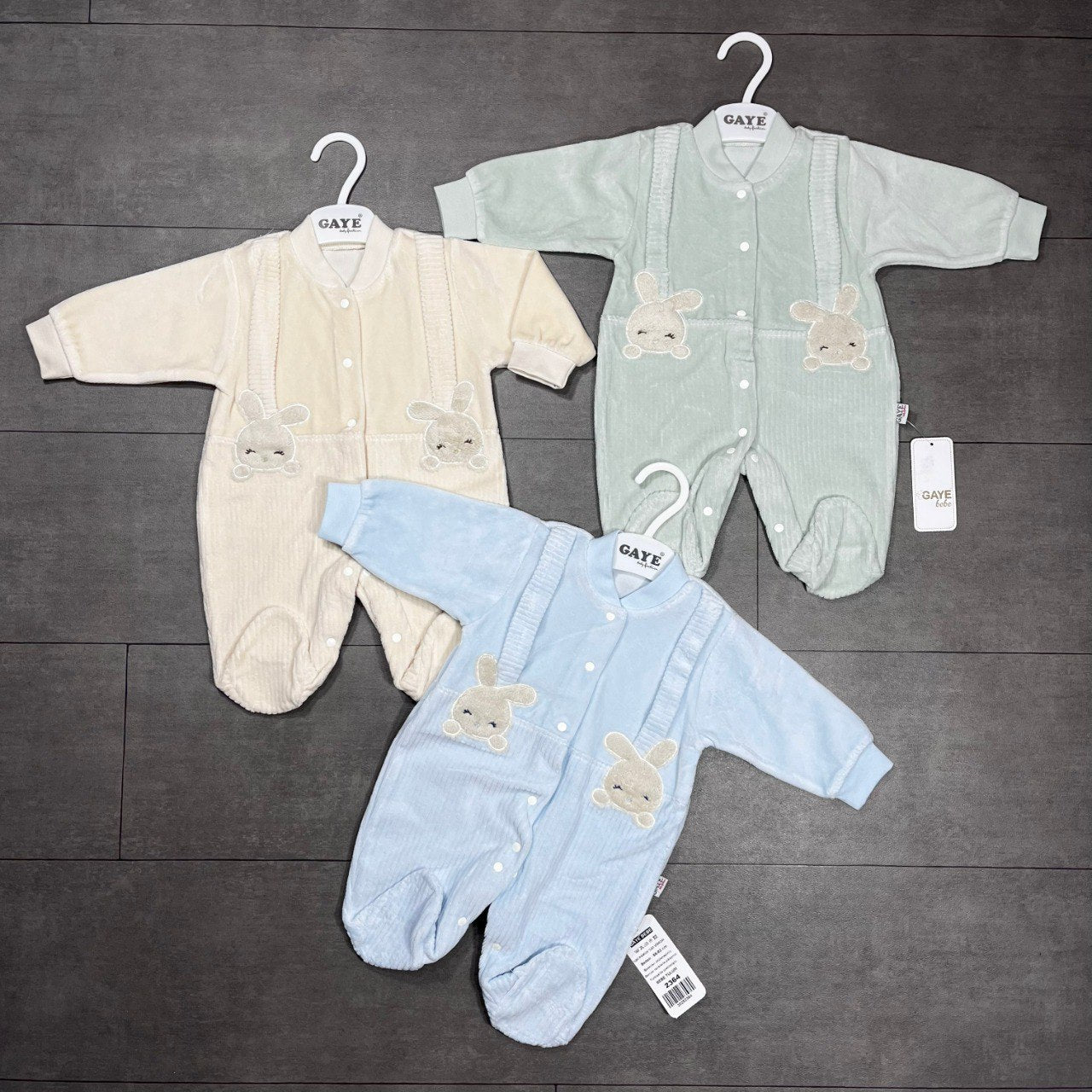 Grenouillère bébé en velours doux . Confortable et chaude, idéale pour un sommeil paisible.