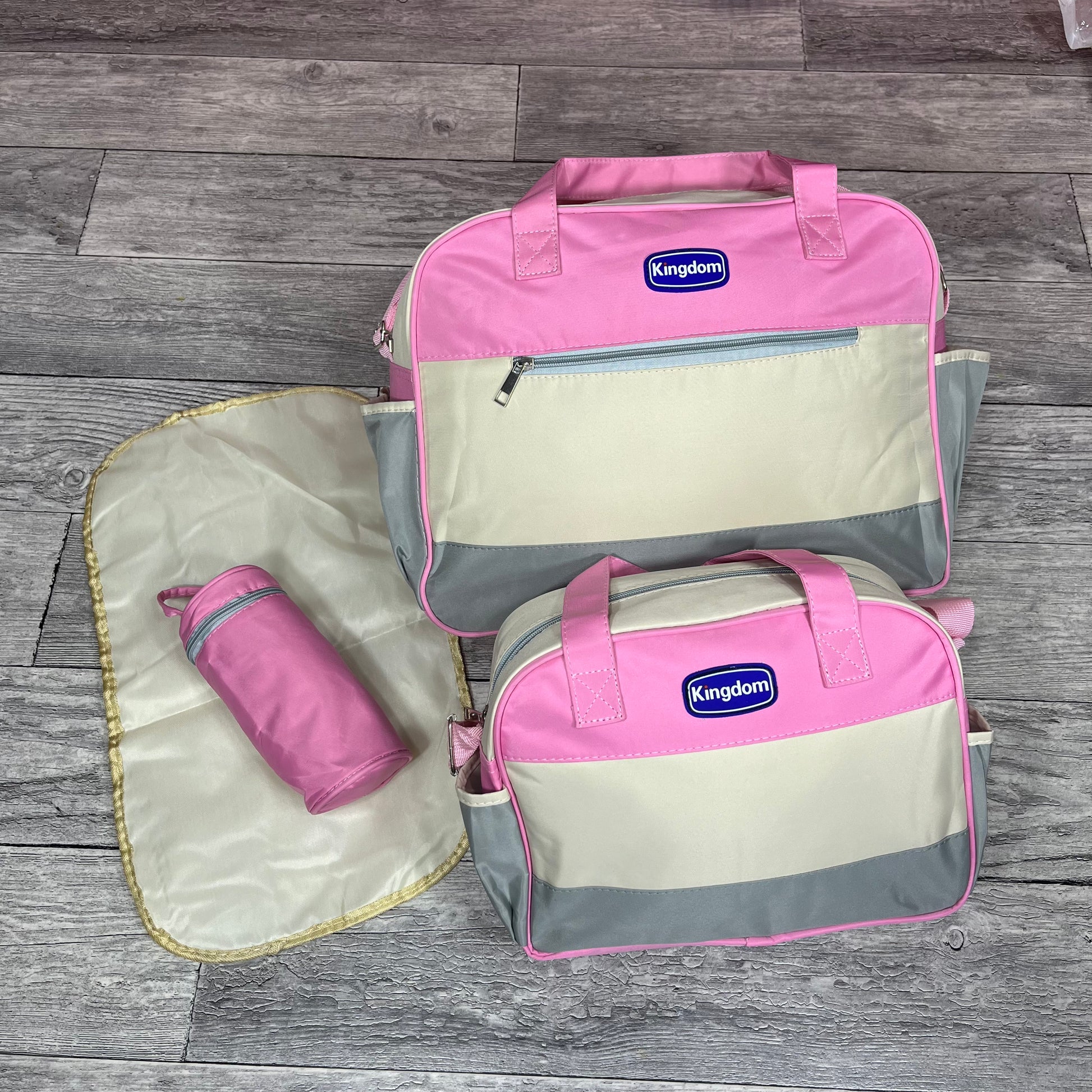 احصلي على الراحة والأناقة مع حقيبة الأم Kingdoom الأربع قطع، المصممة خصيصًا لتلبية احتياجاتك كأم تتميز هذه الحقيبة العصرية بتصميم عملي يحتوي على كل ما تحتاجينه لتنظيم أغراض طفلك أثناء التنقل.